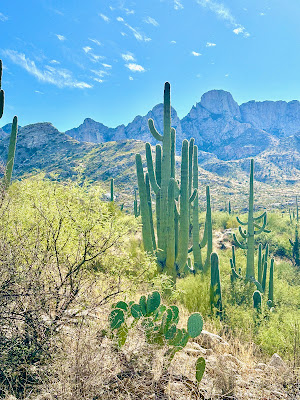 We saw horses, hikers, dogs and bicyclists. We chatted quite awhile with a woman hiking with her dog who is a traveling jewelry artist who lives and works in her RV. She's here to sell her jewelry at a big outdoor art fair this weekend in Oro Valley, which I'll be going to.